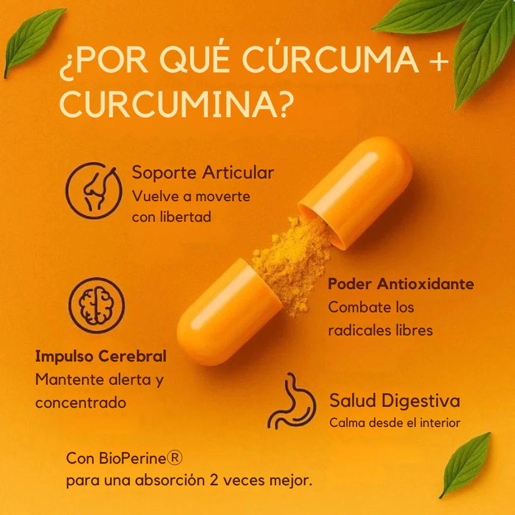 Con extracto estandarizado de alta calidad, combinado con ingredientes que mejoran su absorción como la pimienta negra y el aceite MCT, este suplemento ayuda a reducir la inflamación, proteger las articulaciones y aportar energía diaria.