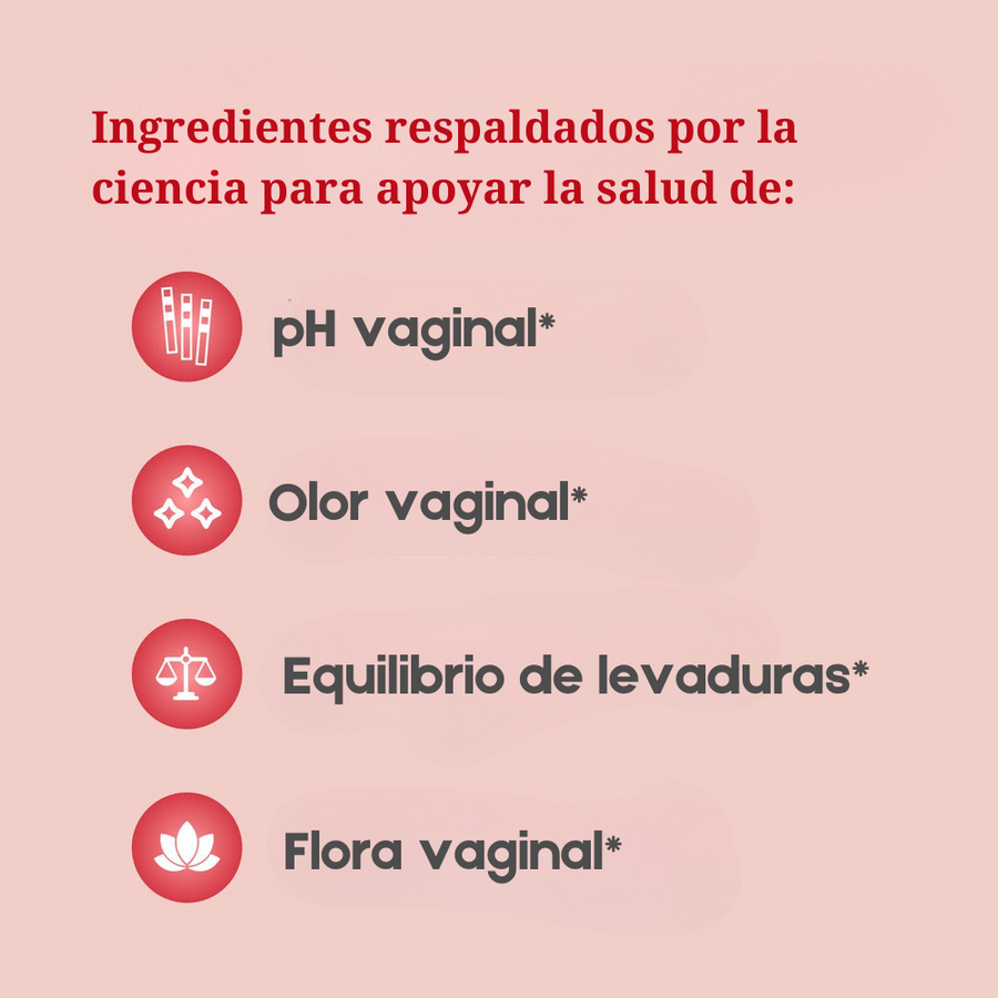 Contiene cepas probióticas con respaldo científico para flora vaginal equilibrada.